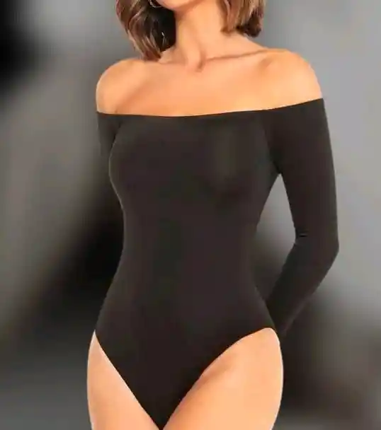 Body manga larga cuello bandeja, talla unica - Color Negro
