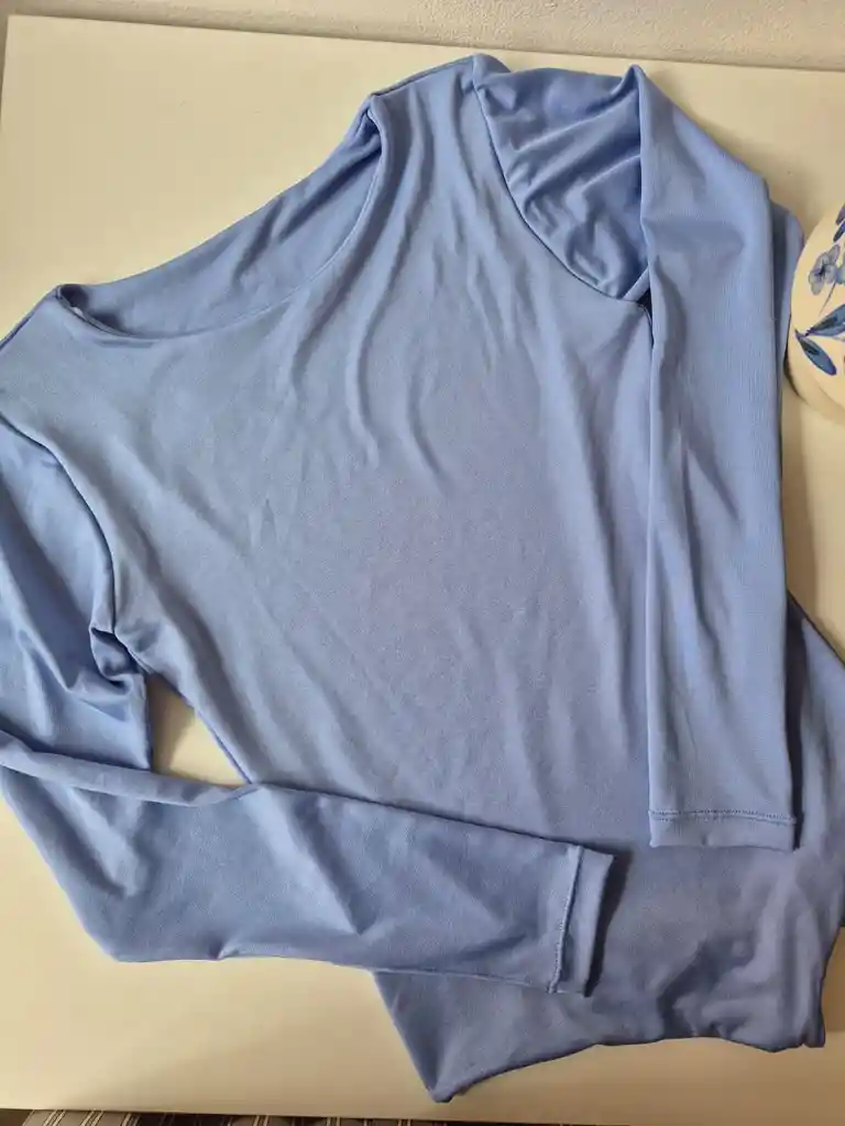 Body manga larga cuello redondo, talla única, color azul bebe.