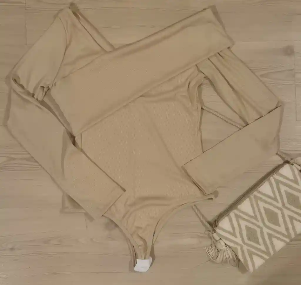 BODY MANGA LARGA TELA RIB, CUELLO BANDEJA CRUZADO, TALLA UNICA (XS, S, M, L) COLOR BEIGE