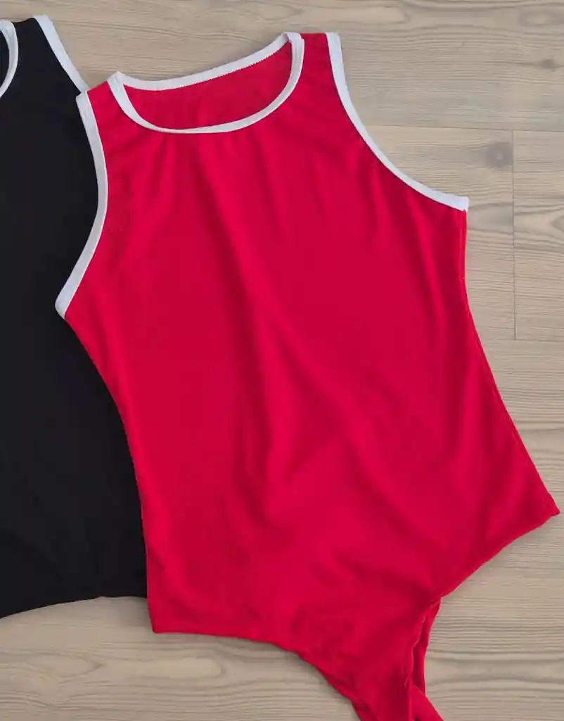 BODY MANGA SISA CUELLO REDONDO, TALLA UNICA (XS, S, M) COLOR ROJO CON BORDES BLANCOS