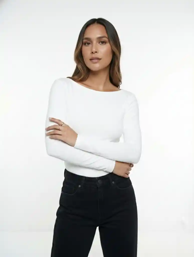 Body Para Mujer Cuello Redondo Manga Larga - Rebeca Blanco S