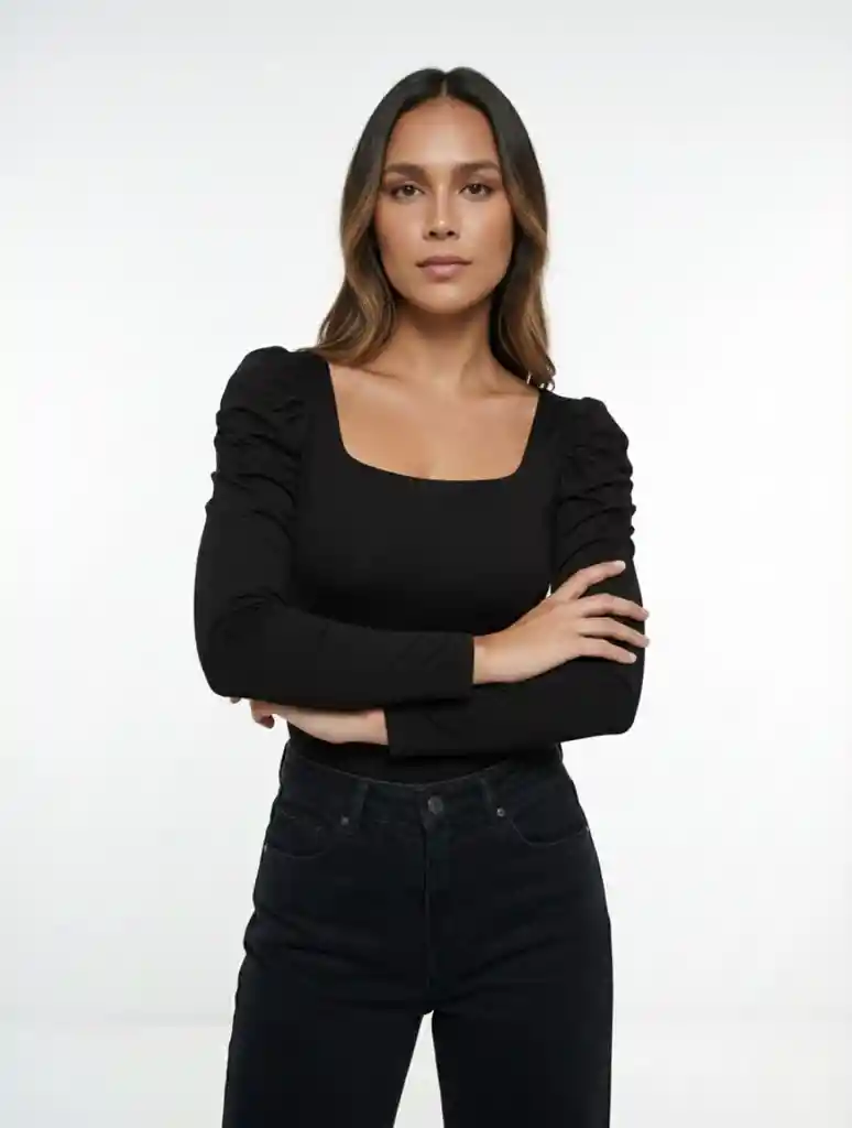 Body Para Mujer Escote Cuadrado Manga Bombacha - Bianco Negro Xl