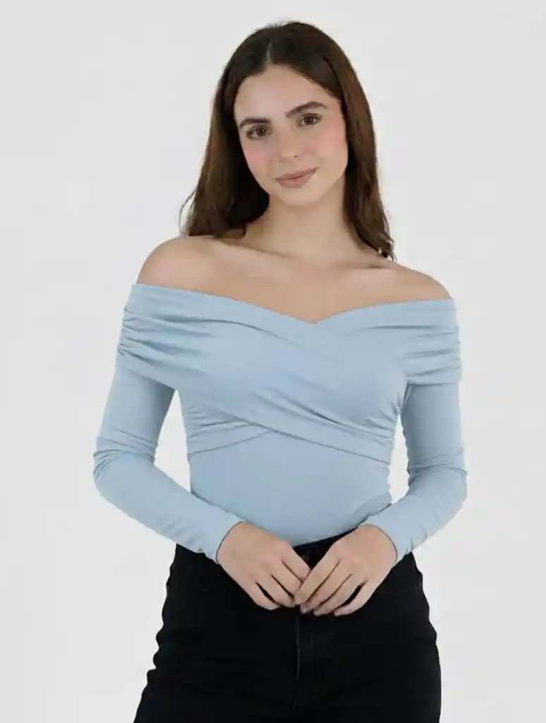 ✨Body de escote cruzado off-shoulder, con un ajuste suave y elegante. Su tela elástica ofrece comodidad todo el día y un look femenino perfecto para cualquier ocasión. 🏃🏻♀️ Tela que no se arruga: ideal para llevar en maleta sin preocupaciones ☀ Tela suave, elástica y fresca, perfecta para cualquier clima 👗 Diseño ajustado tipo envolvente 🧵 Hecho responsablemente por mujeres colombianas: moda con propósito 📏 Cubre de la talla S a la XL (talla única) 👖 Material: 90% poliéster y 10% spandex 📸 La modelo mide 1.70 m y usa talla SM