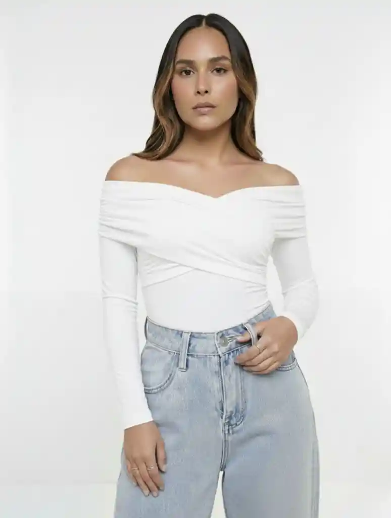 ✨Body de escote cruzado off-shoulder, con un ajuste suave y elegante. Su tela elástica ofrece comodidad todo el día y un look femenino perfecto para cualquier ocasión. 🏃🏻♀️ Tela que no se arruga: ideal para llevar en maleta sin preocupaciones ☀ Tela suave, elástica y fresca, perfecta para cualquier clima 👗 Diseño ajustado tipo envolvente 🧵 Hecho responsablemente por mujeres colombianas: moda con propósito 📏 Cubre de la talla S a la XL (talla única) 👖 Material: 90% poliéster y 10% spandex 📸 La modelo mide 1.70 m y usa talla SM