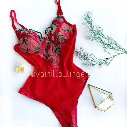 Body con sistema stretch y diseño frontal en las copas en bordado floral, trae forro en las copas para usarlo exterior.