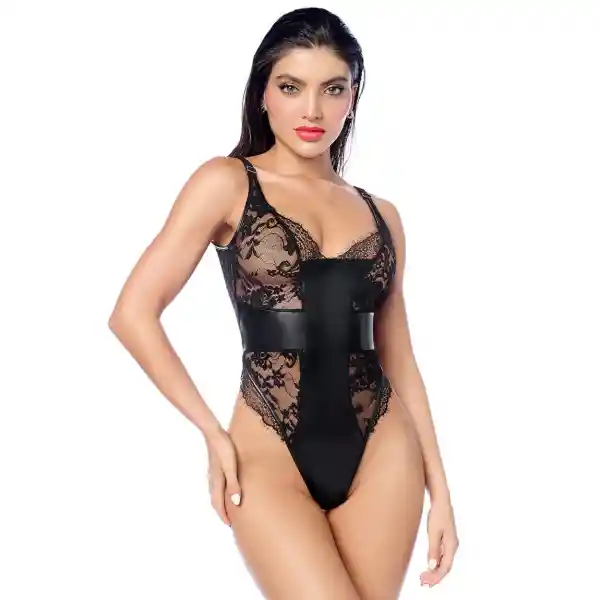 Un diseño elegante y sexy, la mezcla perfecta entre encaje delicado y vinilo brillante. Su ajuste favorecedor moldea la silueta y estiliza la cintura, realzando tu figura con sofisticación. La espalda descubierta con estilo tanga aporta ese toque provocador que despierta miradas y hace de esta prenda una elección irresistible. CARACTERÍSTICAS: Material: Nylon 75%, Elastane 25% Color: Negro Incluye: Body CUIDADOS: por su material requiere que sea lavado a mano usando agua fría y secado a la sombra, tenga en cuenta que al ser una prenda delicada no se recomienda el uso de desinfectantes o planchas.
