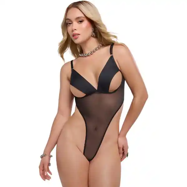 Su combinación de tiras, copas con cortes y malla transparente crea un look vanguardista que realza tus curvas de manera espectacular. Ideal para quienes buscan un estilo atrevido y memorable. CARACTERÍSTICAS: Material: Nylon 75%, Elastane 25% Color: Negro Talla: Unica Incluye: Body CUIDADOS: por su material requiere que sea lavado a mano usando agua fría y secado a la sombra, tenga en cuenta que al ser una prenda delicada no se recomienda el uso de desinfectantes o planchas.