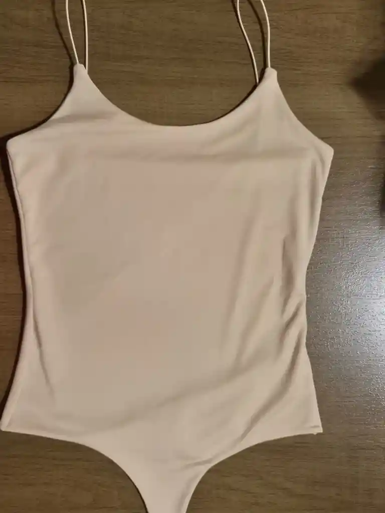 Body de tiras delgadas, talla única, color beige.