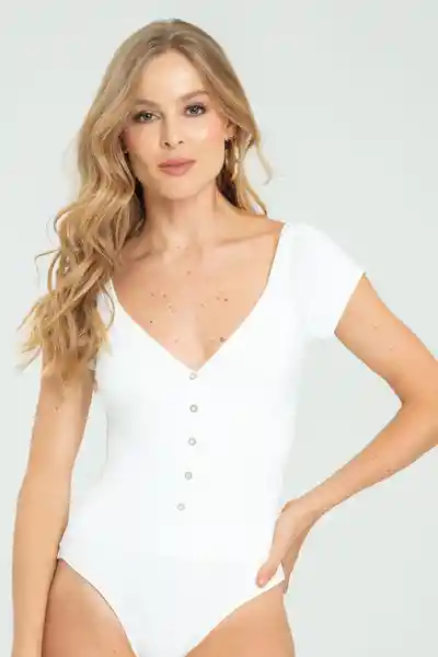 En Tejido de Punto Fondo Entero Perilla Fija en Centro Frente Con Botones Niquel 16 L Manga Corta Ranglan Broche Arandela en la Parte Interna de la Tanga Silueta Ajustada.