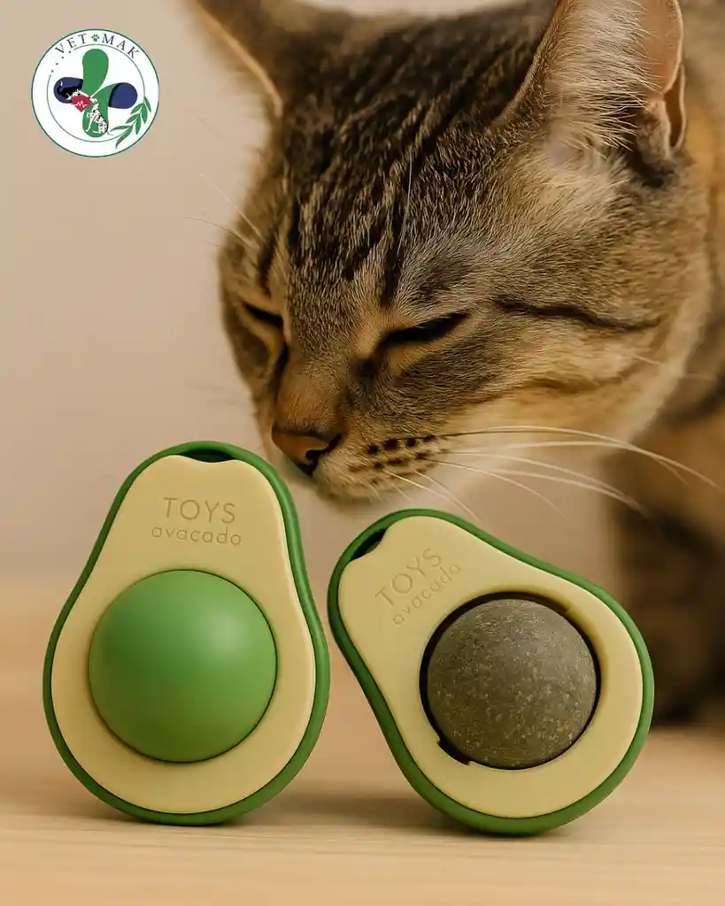 Bola de hierba gatera – Diseño Aguacate Bienvenidos a Vet.Mak La bola de catnip con diseño de aguacate es el juguete ideal para estimular los sentidos y la actividad de su gato. Contiene hierba gatera natural, conocida por sus efectos relajantes y estimulantes, promoviendo el juego, reduciendo el estrés y fomentando el ejercicio. Su forma y textura están diseñadas para que su gato pueda morder, lamer y frotar, ayudando también al cuidado dental.