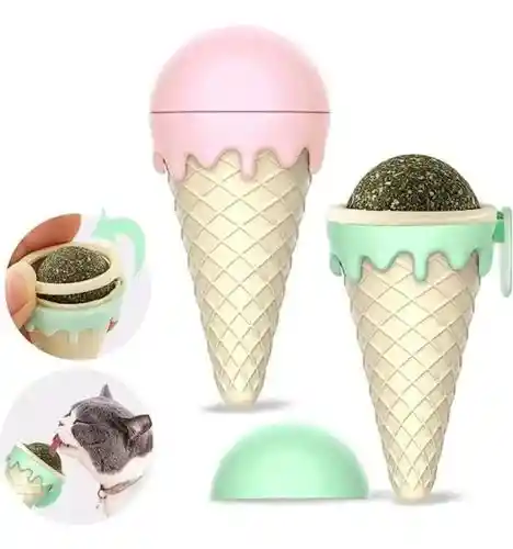 Bola de catnip en empaque con forma de helado amigable con tu mascota. Produce una sensación de tranquilidad en tu mascota.