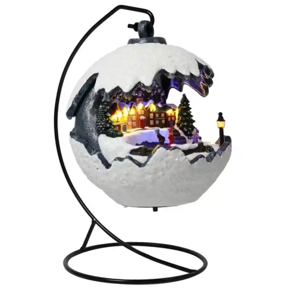 Estilo técnico-descriptivo completo La Bola de Nieve Navideña Colgante de 20 cm es una pieza diseñada para aportar calidez y un toque clásico a los espacios interiores durante la temporada decembrina. Su forma esférica y su diseño transparente permiten apreciar con claridad la escena detallada situada en su interior, conformada por elementos navideños tradicionales y un tren animado que se desplaza constantemente, añadiendo dinamismo y profundidad visual. Este adorno incorpora iluminación LED interna, la cual distribuye la luz de manera uniforme para resaltar la arquitectura en miniatura y los colores de la escena. Además, cuenta con función musical, reproduciendo melodías navideñas que acompañan la ambientación sin resultar invasivas. Su sistema de alimentación mediante 3 pilas AA (incluidas) permite instalarla en cualquier lugar sin necesidad de cables, lo que facilita colgarla en ventanas, paredes, puertas o áreas elevadas. Gracias a su estructura ligera y resistente, la bola decorativa mantiene una instalación estable y segura. Es una pieza ideal para hogares, oficinas, vitrinas comerciales o pequeños rincones que necesiten un detalle temático. Especificaciones: Diámetro: 20 cm Iluminación: LED integrada Movimiento: tren animado interno Función musical: melodías navideñas tradicionales Alimentación: 3 pilas AA incluidas Material: polímeros decorativos de uso estacional Instalación: colgante Uso recomendado: interiores, ventanas, puertas, paredes Nota de garantía: 30 días por defectos de fábrica. Retracto: 5 días hábiles según políticas de la empresa.
