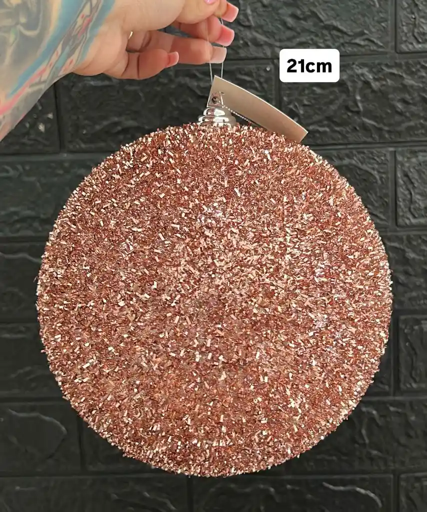 BOLA NAVIDEÑA DECORADA 21CM PALO DE ROSA COD.4143