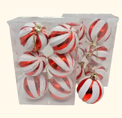 Bolas de navidad rojas con blanco x 6. Diametro de 18 cm