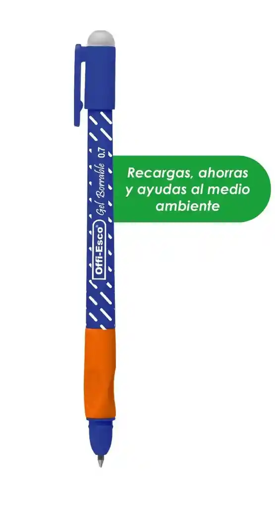 Bolígrafo Con Tinta Gel Borrable color Azul Punta de 07 m en Carbono de Tungsteno. Moderno y Confortable Agarre Antideslizante. Escribe Borra y Corrige al Instante. Un Borrador en la Tapa y Otro en el Cuerpo Del Bolligrafo.