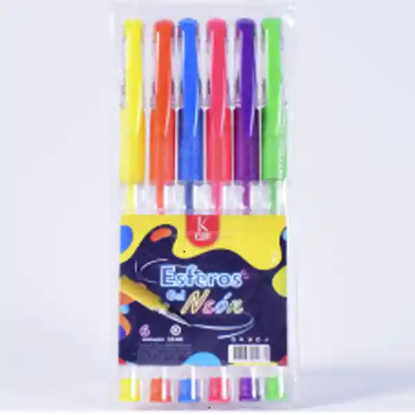Esferos de gel en tonos neón surtidos, estuche por 6 unidades. Ideal para tomar apuntes y trabajos manuales con un toque vibrante.