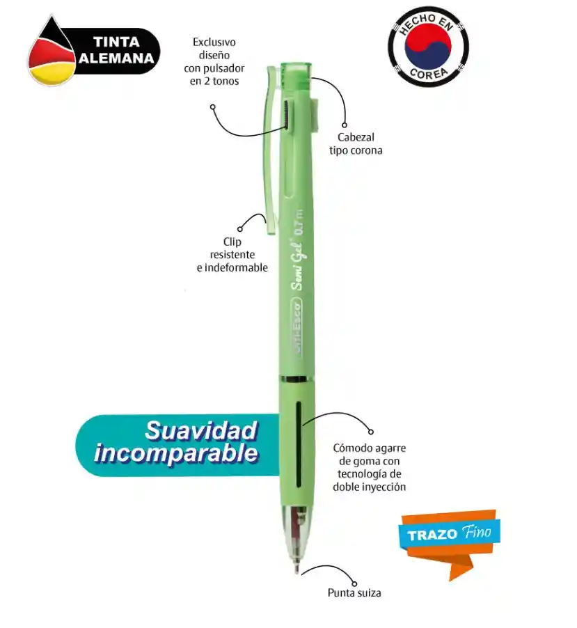 Bolígrafo semi gel 0.7 m tres minas Colores de las tres minas azul, rojo y negro