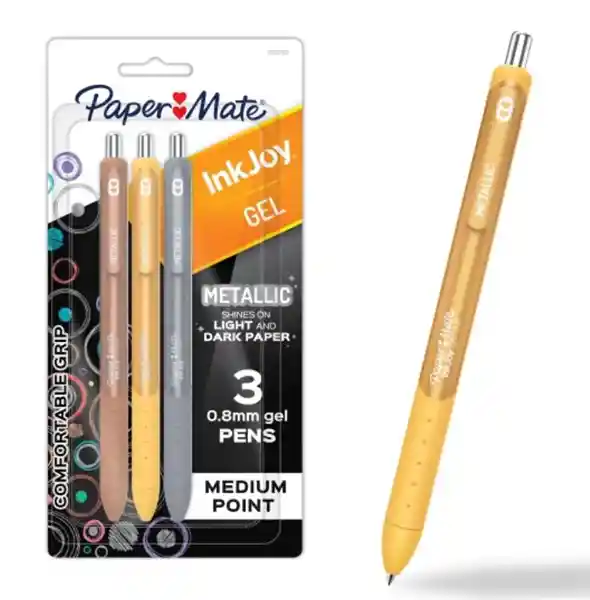 Descubre la magia de la escritura con los bolígrafos de tinta gel de trazo 0.8mm. Los colores metalizados brillan en papel claro y oscuro, elevando tus notas a otro nivel.