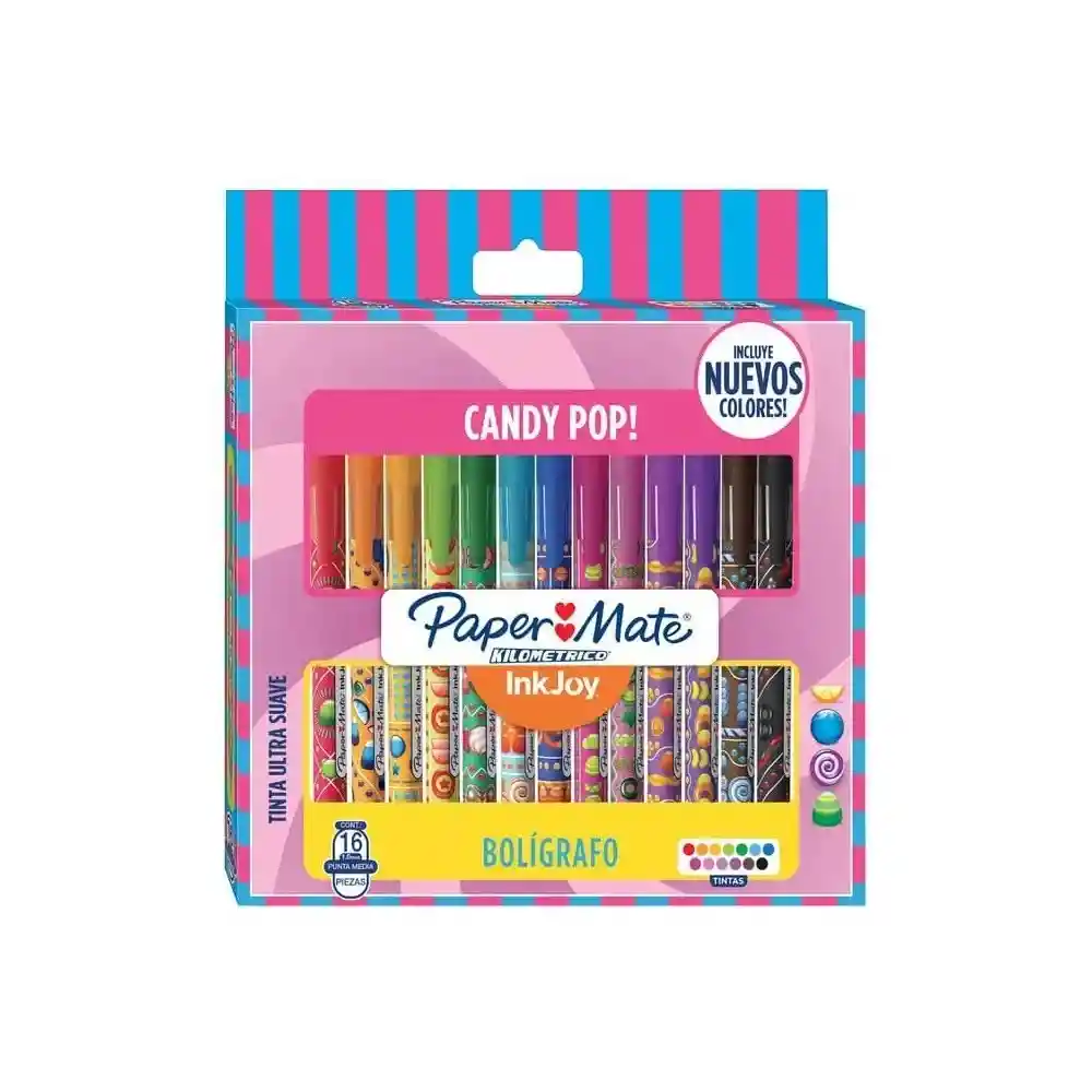 Boligrafo kilometrico candy pop X 16 unidades multi color. Convierta la escritura de todos los días en golosinas para los ojos con el paquete de Candy Pop de Paper Mate! Los lindos tonos inspirados en los dulces, más la tinta de secado rápido que resiste las manchas a través del papel, se combinan para dar a todos sus dibujos y proyectos un toque de color indulgente. Su paquete también viene con una vibrante variedad de colores tropicales y clásicos de la pluma de Paper Mate con la misma tinta increíble.