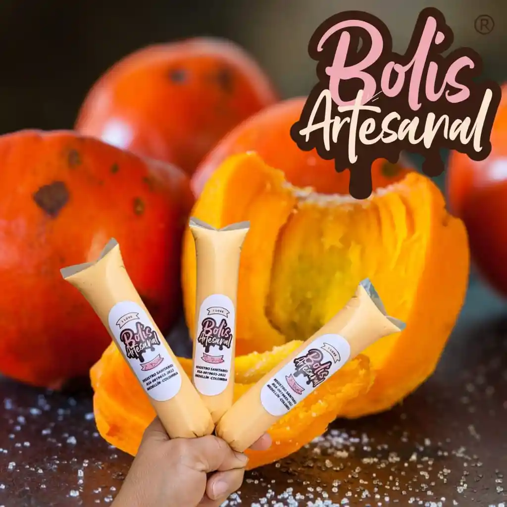 Postre en forma de bolis, A base de leche, sabor a chontaduro ideal recuperar energia y para endulzar tu día en compañía de tus familiares o amigos.