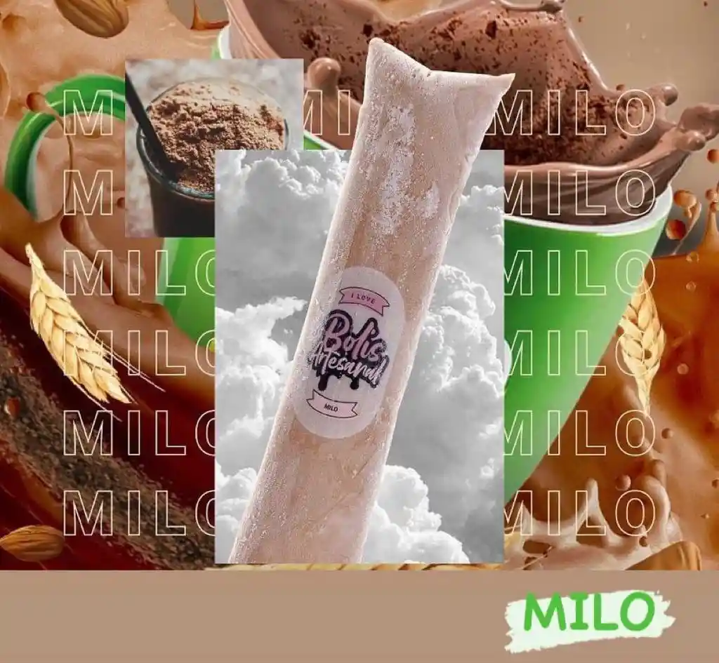 Postre en forma de bolis, A base de leche, sabor a Milo ideal para endulzar tu día en compañía de tus familiares o amigos.