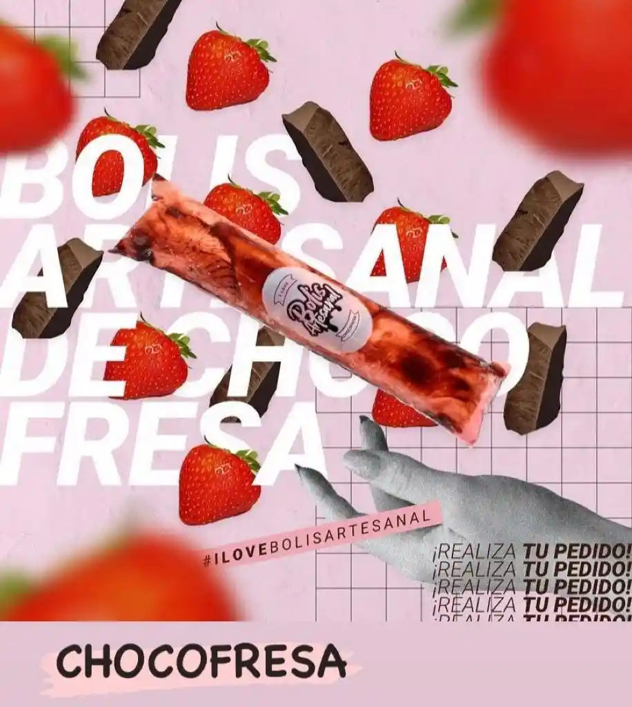 Postre en forma de bolis, sabor a Chocofresa ideal para endulzar tu dia en compañia de tus familiares o amigos.