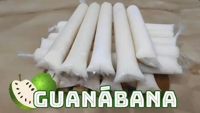 congelado con fruta de guanabana, leche en polvo, azucar.