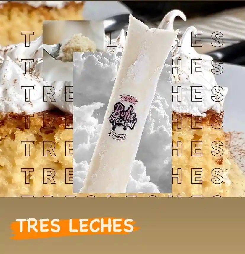 Postre en forma de bolis, sabor a Tres leches ideal para endulzar tu dia en compañia de tus familiares o amigos.