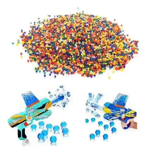 Descripción Las bolitas de hidrogel, como las conocidas Orbeez o similares, son pequeñas esferas que crecen al sumergirse en agua. Estas esferas están hechas de un polímero superabsorbente que puede expandirse hasta varias veces su tamaño original al absorber agua. Características principales: Cantidad: 5.000 bolitas, una cantidad considerable para juegos, decoración o manualidades. Tamaño: Crecen hasta un tamaño promedio de 7-8 mm después de la hidratación. Usos: Juguetes: Son populares como munición en pistolas de gel (gel blasters). Decoración: Se usan para llenar jarrones o como centro de mesa. Manualidades: Ideales para proyectos creativos o sensoriales. Jardinería: Ayudan a mantener la humedad en las plantas. Material: Generalmente no tóxico y seguro para manejar, aunque no deben ingerirse. Instrucciones de uso: Hidratación: Coloca las bolitas en un recipiente grande con agua y déjalas reposar entre 5-7 horas. Se expandirán hasta su tamaño máximo. Manejo: Una vez hidratadas, están listas para usar en tus actividades o juguetes. Precauciones: Mantén las bolitas fuera del alcance de niños pequeños o mascotas para evitar que las traguen. No deseches las bolitas en el desagüe, ya que pueden obstruirlo. Asegúrate de utilizarlas según las instrucciones del fabricante. Nota: se envía color, según disponibilidad de la tienda.