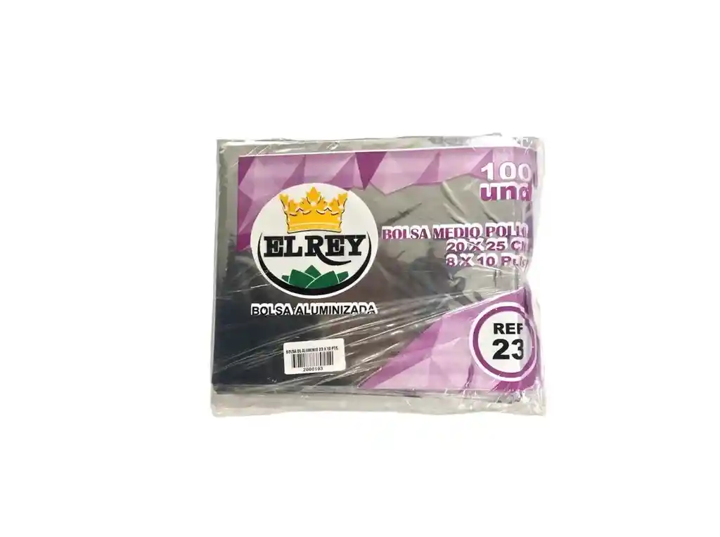 BOLSA ALUMINIZADA 100 UNIDADES MEDIO POLLO 20 X 25 CM, 8 X 10 PULGADAS