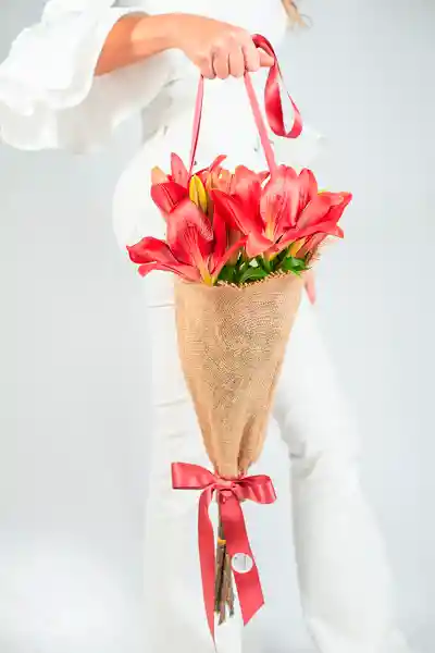 Bolsa en yute con 10 lirios vinotinto