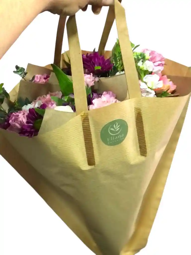 5 mini boquets flor variada, colores surtidos ( clavel,mini clavel y alstromelia) empacados en una bolsa de kraft
