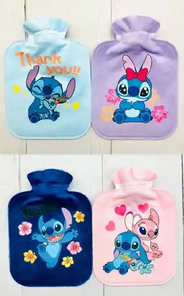 Hermosa bolsa de Agua Caliente edicion Stich, capacidad 800ml, material piel de durazno