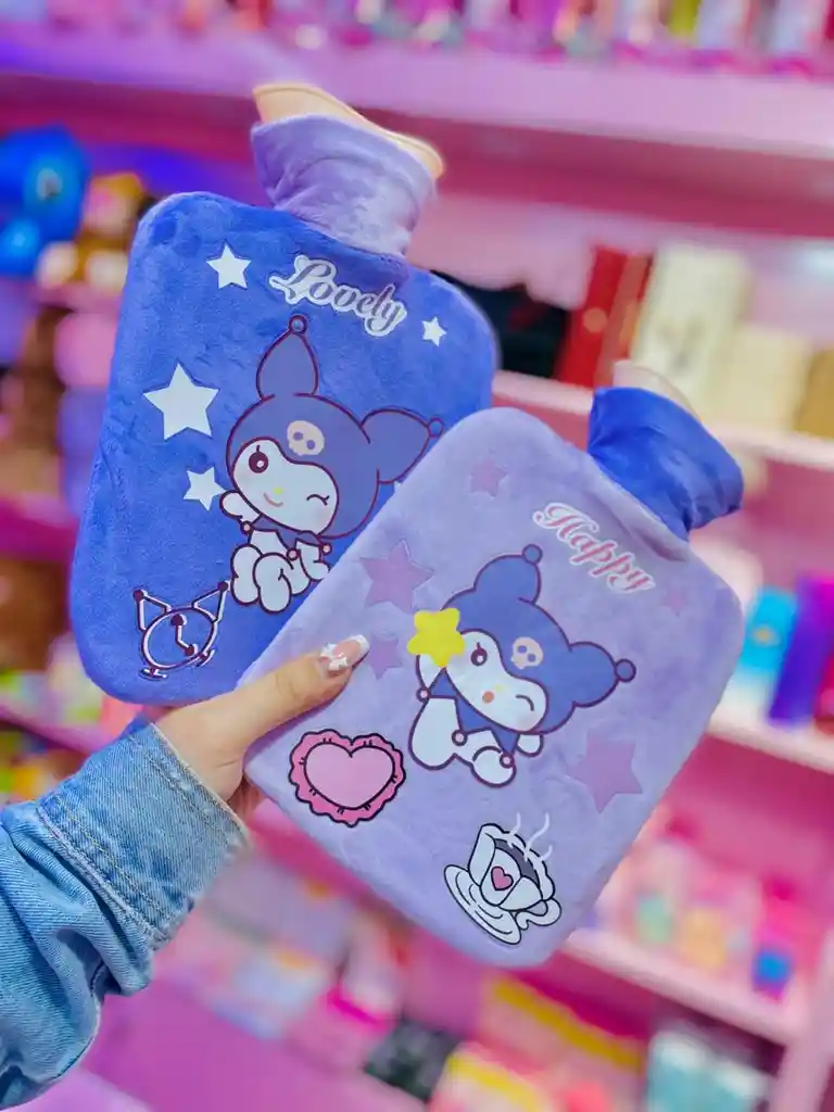 ¡Consigue el accesorio más cute para tus momentos de relax! 🥰 Esta bolsa de agua caliente con cubierta de peluche extra suave es la dosis de ternura y calidez que necesitas. Su diseño estilo Kuromi es irresistiblemente adorable y perfecto para: Alivio y Confort: Proporciona calor terapéutico (ideal para cólicos, dolores musculares o simplemente para calentarte). Diseño Súper Kawaii: La funda de peluche viene con el bordado de tu personaje favorito y mensajes positivos. Doble Protección: Incluye la bolsa de goma interior y la funda de peluche protectora. El color y diseño específico (ej. azul o morado) se envía según disponibilidad de la tienda. ¡Ambos son igual de tiernos! ¡Pídela ahora y disfruta de un momento de relax lleno de estilo! 🛍️💜