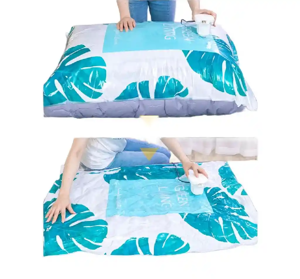 Plegable, gran capacidad, hermético y hermético, conveniente y práctico, a prueba de insectos, a prueba de moho, ahorra espacio, ecológico, no tóxico, suave y resistente al desgaste, sin olor, simple y elegante. Las bolsas de almacenamiento al vacío ayudan a crear hasta tres veces más espacio de almacenamiento en el armario o debajo de la cama. Las bolsas no solo comprimen artículos voluminosos para un almacenamiento más compacto, sino que también crean un sello hermético para protegerse contra la suciedad, la humedad, los mohos, los insectos y los olores. Material: PA + PE Mapa de colores: hoja de arce azul Alta calidad y durable – cremalleras dobles y clips de sellado aseguran un sello seguro para una compresión óptima cada vez. Recomendaciones: El tamaño se mide manualmente, puede haber una diferencia de 1 cm, el tamaño real está sujeto al producto recibido. Tu compra Incluye: 1 Bolsa compresión Grande