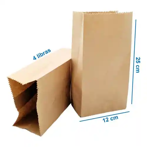 BOLSA PAPEL KRAFT #4 MEDIDAS 12.5X28X6.5. PAQX100UND