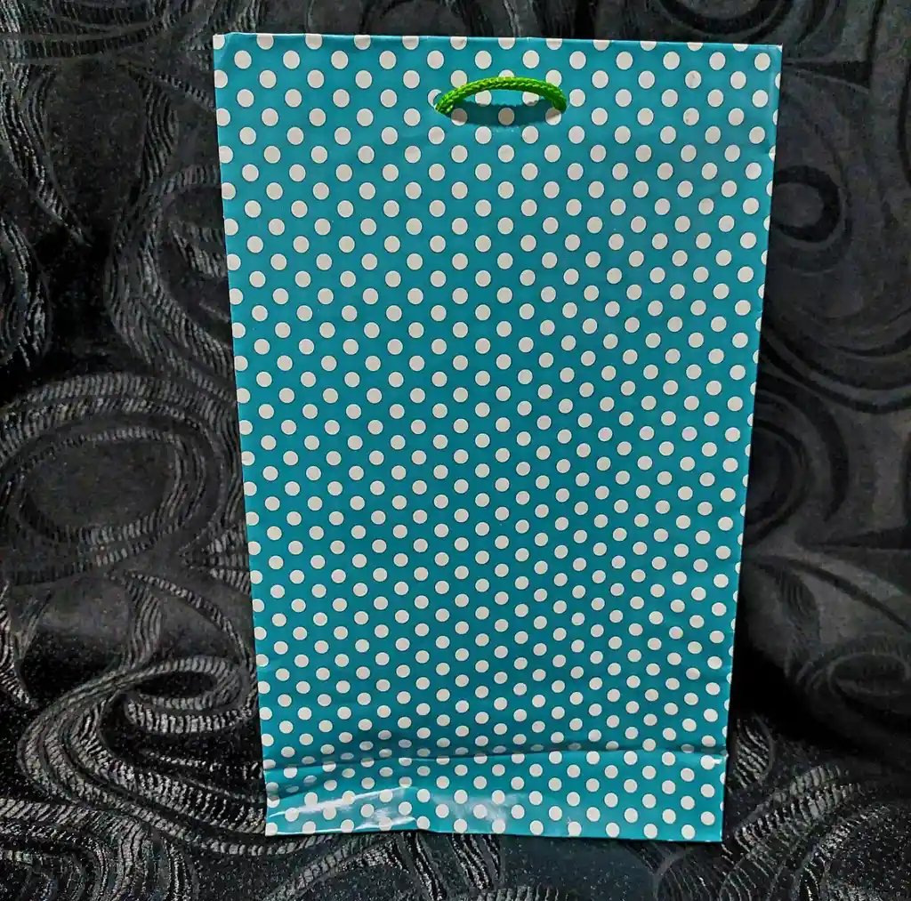 bolsa de regalo azul CLARO de puntos 28cm de alto x 18 cm