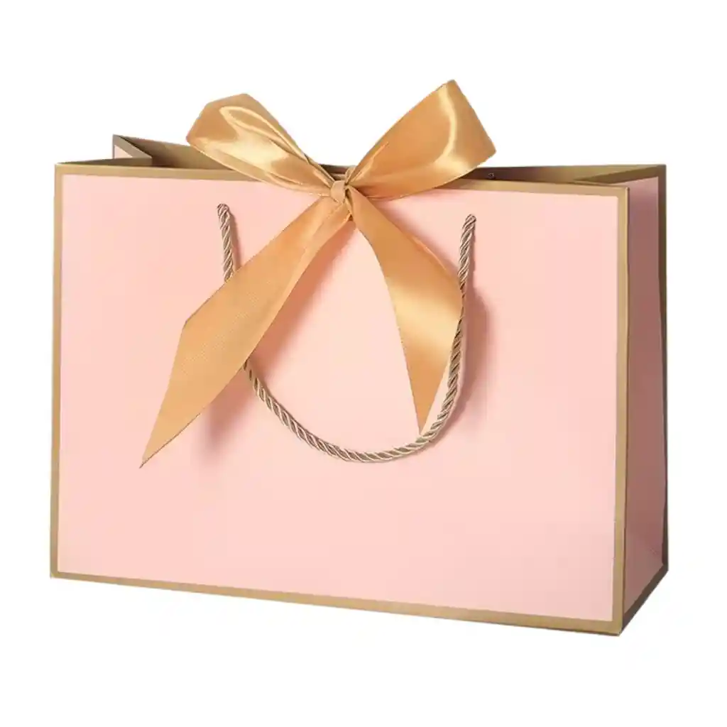 🎀 Bolsa de regalo rosa con lazo dorado ✨ Elegancia que envuelve tus detalles Haz que cada obsequio hable por sí solo con esta encantadora bolsa de regalo en tono rosa pastel, adornada con un lazo dorado que roba miradas. Su diseño sofisticado y acabado brillante la convierte en el empaque perfecto para sorprender con estilo. 📏 Medidas ideales para regalos: Alto: 15 cm Ancho: 19 cm Fondo: 7 cm 💖 Detalles que enamoran: Asas de cuerda resistentes y decorativas Lazo dorado incluido para un toque premium Base firme que mantiene la forma Ideal para cosméticos, accesorios, velas, y más
