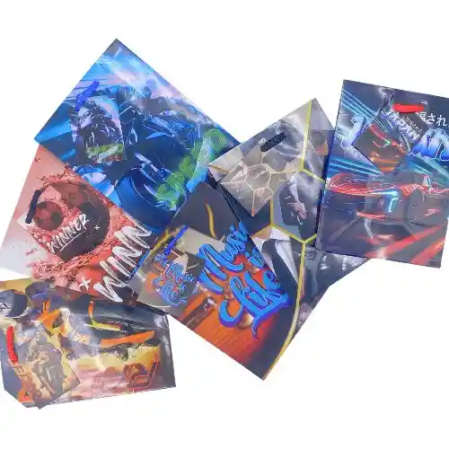 Su diseño moderno y sobrio está pensado especialmente para regalos masculinos, ideal para sorprender en cualquier ocasión. Fabricada en papel resistente con acabado plastificado brillante, ofrece mayor durabilidad y una apariencia sofisticada. Además, cuenta con cordón para llevar, lo que facilita su transporte y brinda mayor comodidad al momento de entregar el regalo. 🎁 ¿Para qué sirve? Esta bolsa es perfecta para: Empacar detalles pequeños como billeteras, relojes, perfumes o accesorios. Presentar regalos en cumpleaños, aniversarios, Día del Padre o celebraciones especiales. Entregar obsequios corporativos o detalles empresariales. Mejorar la presentación de productos en tiendas y emprendimientos. 📋 Ficha Técnica Producto: Bolsa de regalo de papel Tipo: Pequeña Medidas: 16,2 x 12 cm Material: Papel resistente Acabado: Plastificado brillante Diseño: Estampados ideales para hombre Asa: Cordón resistente para fácil transporte Uso: Empaque y presentación de regalos pequeños