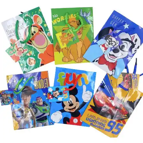 La Bolsa de Regalo de Papel Pequeña es el complemento perfecto para presentar tus obsequios de forma práctica, colorida y especial. Con encantadores diseños de personajes de Disney, es ideal para sorprender a los más pequeños en cualquier ocasión. Gracias a su tamaño compacto y acabado plastificado brillante, esta bolsa no solo protege el regalo, sino que también le da un toque llamativo y elegante. 📌 ¿Qué es? Es una bolsa de regalo elaborada en papel resistente, con acabado plastificado brillante que aporta mayor durabilidad y una apariencia más atractiva. Incluye cordón superior para facilitar su transporte y brindar mayor comodidad al llevarla. 📏 Ficha Técnica Producto: Bolsa de Regalo de Papel Tamaño: Pequeña Medidas: 16,2 x 12 cm Material: Papel resistente Acabado: Plastificado brillante Asa: Cordón para llevar Diseño: Personajes infantiles de Disney Uso: Presentación de regalos pequeños