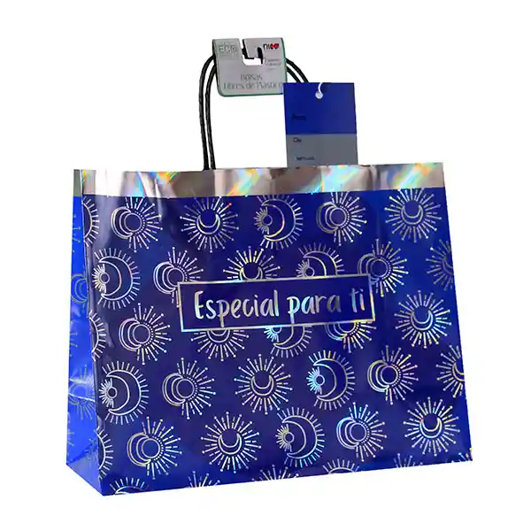 Bolsa de regalo ecológica premium con terminados especiales, tarjeta de para y medidas ancho 29 x alto 19 x fuelle 11