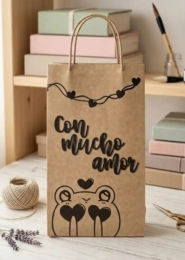 💝 Bolsa de Regalo Kraft (27 x 16 cm) | “Con mucho amor” 🌿