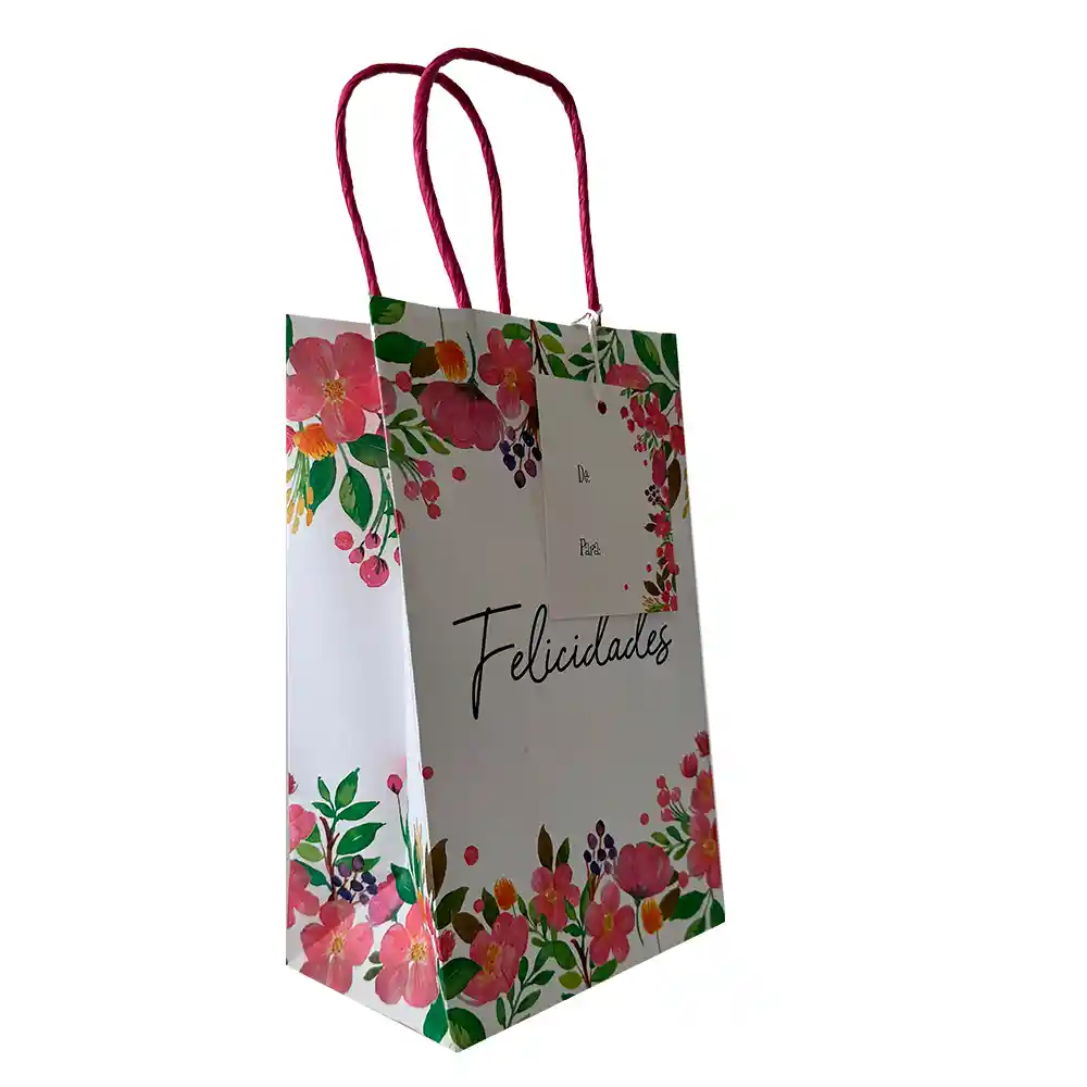 Medidas: 13 de ancho x 20,8 de alto x 8 fuelle cm Bolsa de regalo elaborada en papel kraft con acabados especiales, escarcha, mate o estampados. Contiene tarjeta de para y asas resistentes para transportar tus regalos con seguridad.