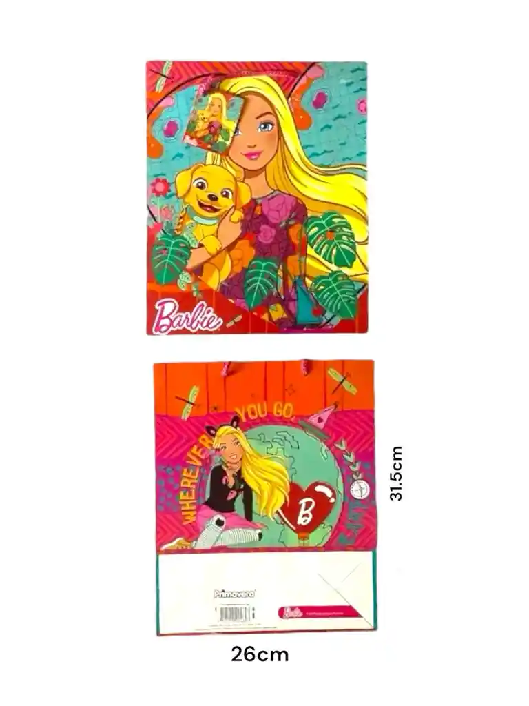 Bolsa De Regalo Mediana Para Niña Motivo de Barbie Medidas: 31.5cm alto x 26cm ancho