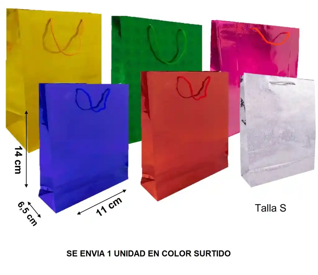 🎁 Bolsa De Regalo Metalizada Talla S 14 Cm X 11 Cm Colores Surtidos se envia color segun disponibilidad