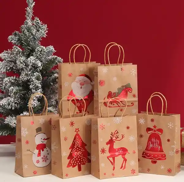 BOLSA DE REGALO NAVIDAD KRAFT 21X15X8CM VARIOS MOTIVOS