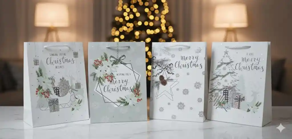 🎄 Bolsa De Regalo Navideña 18x23 cm – Pequeña Diseños Blancos con Detalles Plateados Escarchados Estilo Minimalista Añade un toque de elegancia invernal a tus obsequios con esta bolsa de regalo navideña pequeña de 18x23 cm, elaborada en cartulina resistente y decorada con diseños blancos minimalistas acompañados de detalles plateados escarchados. Su estilo moderno y limpio crea una presentación sofisticada, perfecta para regalos delicados o formales. 🌟 Características: ✅ Tipo: Bolsa de regalo navideña ✅ Tamaño: 18 x 23 cm aprox. (pequeña) ✅ Material: Cartulina resistente ✅ Motivos: Blancos con detalles plateados escarchados (se envía según disponibilidad) ✨ Copos de nieve, árboles invernales, patrones navideños sutiles ✅ Asas resistentes tipo cordón o cinta, según el diseño ✅ Ideal para perfumes, accesorios, cosméticos, detalles pequeños y regalos especiales ✅ Diseño minimalista, elegante y reutilizable 🎁 Uso ideal: Perfecta para intercambios, regalos empresariales, detalles de novena o presentaciones navideñas con un estilo moderno y sofisticado. ✨ ¡Dale a tus regalos un acabado limpio y elegante con estos hermosos diseños blancos y plateados escarchados!