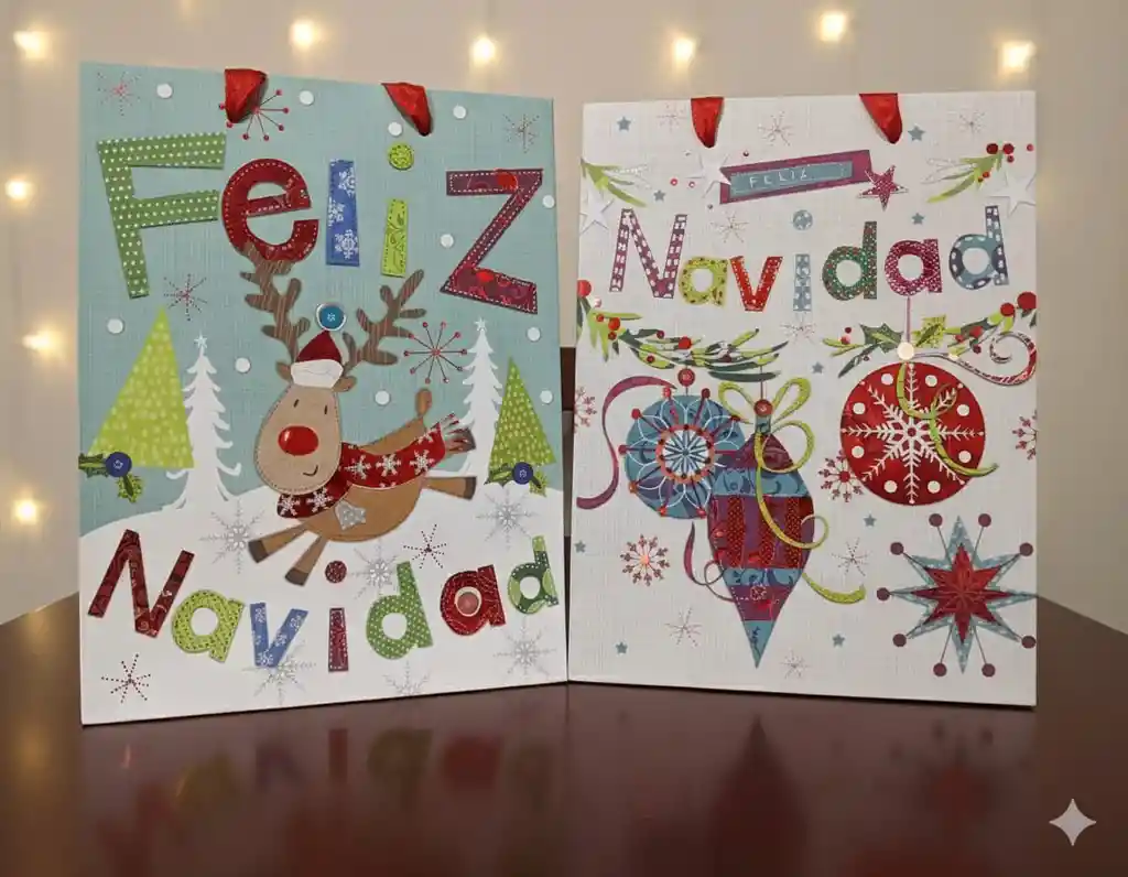 🎄 Bolsa De Regalo Navideña 18x23 cm – Pequeña Estilo Patchwork/Collage Coloridas y Suaves Agrega encanto y creatividad a tus obsequios con esta bolsa de regalo navideña pequeña de 18x23 cm, diseñada con un encantador estilo patchwork/collage que combina colores vibrantes, texturas suaves y patrones festivos que resaltan a primera vista. Su estilo artesanal y cálido la convierte en la opción perfecta para regalos llenos de alegría y personalidad. 🌟 Características: ✅ Tipo: Bolsa de regalo navideña ✅ Tamaño: 18 x 23 cm aprox. (pequeña) ✅ Material: Cartulina resistente ✅ Motivos: Diseños patchwork/collage coloridos y suaves (se envía según disponibilidad de la tienda) ✨ Retazos ilustrados, patrones mixtos, texturas visuales y detalles festivos 🎀 Asas de cinta satinada, suaves, cómodas y elegantes ✅ Ideal para accesorios, perfumes, pequeños juguetes, cosméticos y detalles especiales ✅ Diseño colorido, creativo y reutilizable 🎁 Uso ideal: Perfecta para regalos infantiles, detalles familiares, intercambios, novenas y sorpresas navideñas llenas de color y estilo artesanal. ✨ ¡Haz que tus regalos destaquen con este hermoso estilo patchwork lleno de color, calidez y magia navideña!