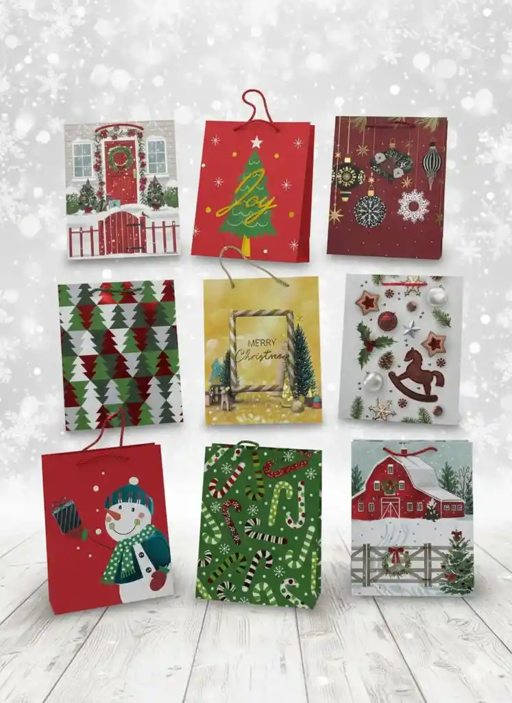 Bolsa De Regalo Navideña 26 x 32 x 12 cm – Estilo Ilustrado Motivos Surtidos Presenta tus obsequios de forma alegre y colorida con esta bolsa de regalo navideña de estilo ilustrado. Sus motivos surtidos y diseño festivo la hacen ideal para sorprender en Navidad, intercambios y celebraciones de fin de año, brindando una excelente presentación sin necesidad de envoltura adicional. Características: Medidas: 26 x 32 x 12 cm Diseño navideño ilustrado con motivos surtidos Material resistente y de buena calidad Ideal para regalos medianos Práctica, decorativa y lista para regalar El diseño se envía según disponibilidad de la tienda.