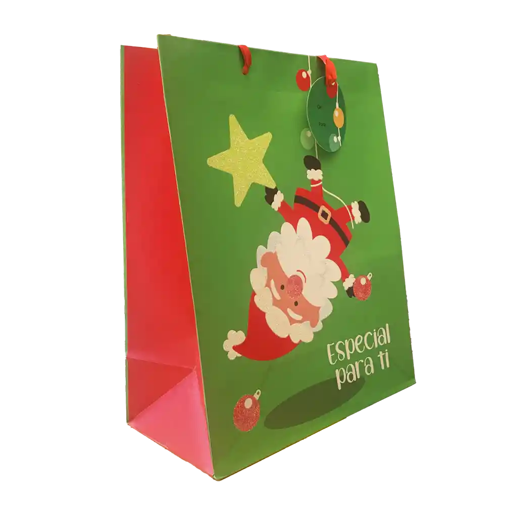 Bolsa de regalo Nico con medidas de 26 cm de ancho x 32 cm de alto para navidad Bolsa de regalo Nico Premium con terminados especiales y tarjeta de para con diseños exclusivos para navidad.